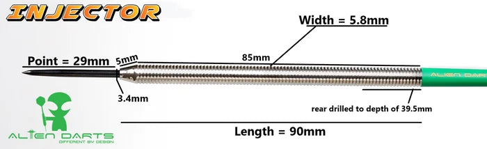 The unique Alien Darts INJECTOR are probably the longest tungsten darts available to buy in the world! The darts are 90mm long!